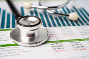Stethoscope on chart graph paper, finance, account, statistic, a